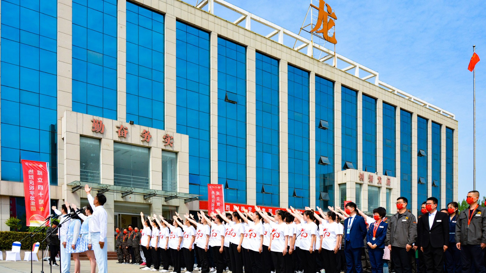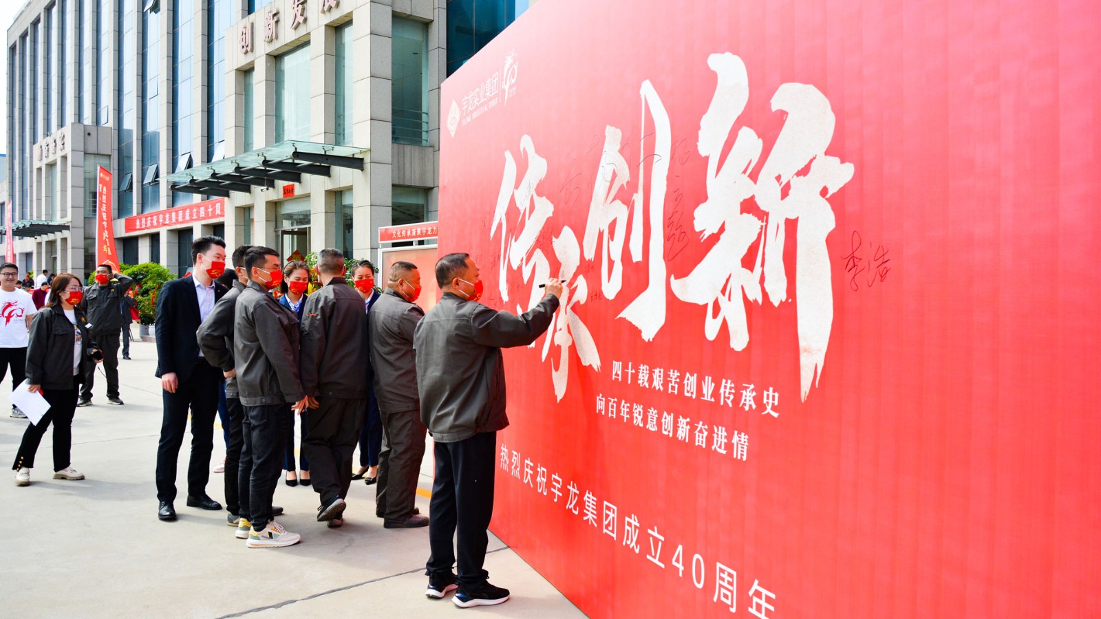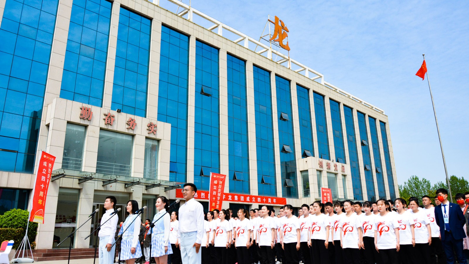 在嚴(yán)格的防疫措施下,4月16日,宇龍集團(tuán)的干部職工在集團(tuán)公司總部隆重集會(huì),召開“慶祝宇龍集團(tuán)成立四十周年慶典大會(huì)”,集團(tuán)公司董事會(huì)及總經(jīng)辦領(lǐng)導(dǎo)出席大會(huì)。
