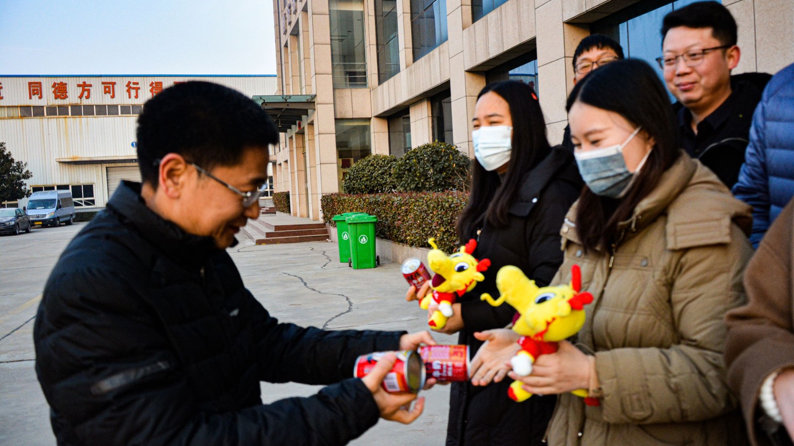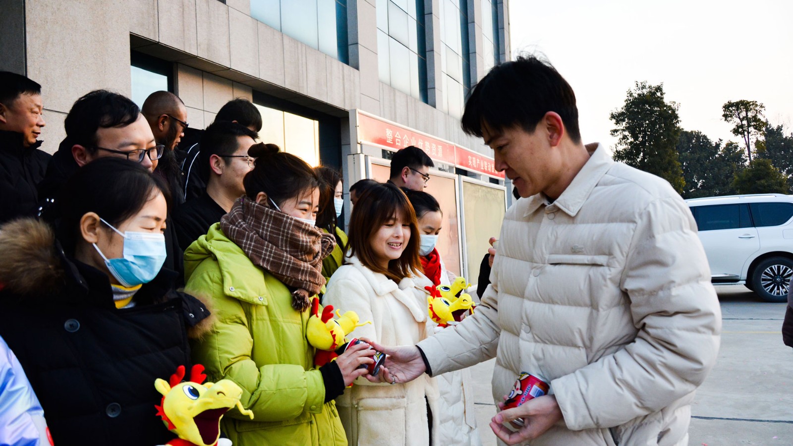 緊接著,集團(tuán)公司總經(jīng)理岳總、副總經(jīng)理祁總、張總、戴總為大家發(fā)放代表著幸運(yùn)和祝福的旺仔、小龍人,口罩下依然藏不住大家幸福的笑容,攝影師楊紅宇按下了時光的快門。