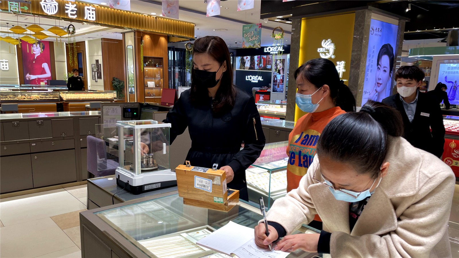 ? 3月11日宇龍廣場(chǎng)邀請(qǐng)市場(chǎng)監(jiān)督管理局工作人員對(duì)1樓珠寶專柜六福、周六福、周大福 、周大生、中國(guó)黃金、金德恒等珠寶品牌電子天平精確度進(jìn)行了校驗(yàn)。在檢定現(xiàn)場(chǎng),市場(chǎng)監(jiān)督管理局相關(guān)工作人員采取“監(jiān)督加服務(wù)”的方式開(kāi)展此次計(jì)量監(jiān)督檢查,對(duì)使用的電子天平進(jìn)行現(xiàn)場(chǎng)檢定,嚴(yán)格核準(zhǔn)是否存在誤差現(xiàn)象,對(duì)檢定合格的計(jì)量器具統(tǒng)一出具檢驗(yàn)報(bào)告。