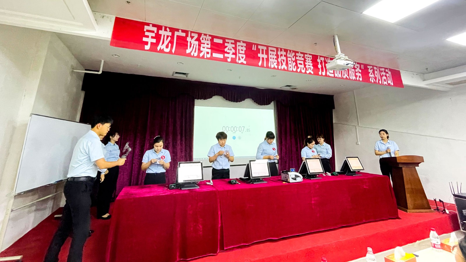 6月3日上午,宇龍廣場(chǎng)首屆服務(wù)技能比拼大賽系列活動(dòng)——收銀,經(jīng)過(guò)各部門(mén)的精心籌備在負(fù)一樓會(huì)議室拉開(kāi)帷幕。集團(tuán)公司副董事長(zhǎng)賀總、集團(tuán)公司審計(jì)部張部長(zhǎng)、商貿(mào)公司總經(jīng)理于總、集團(tuán)管理部張媛迪等共有一百余人參加此次活動(dòng)。