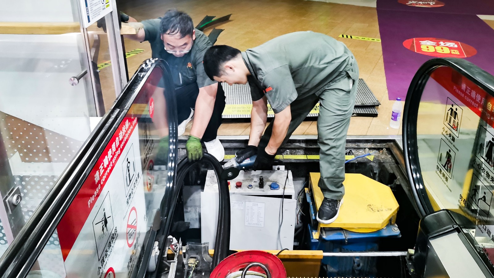 近期,維修中心電梯維保班組對宇龍廣場南廳1-2自動扶梯扶手帶進(jìn)行了更換。